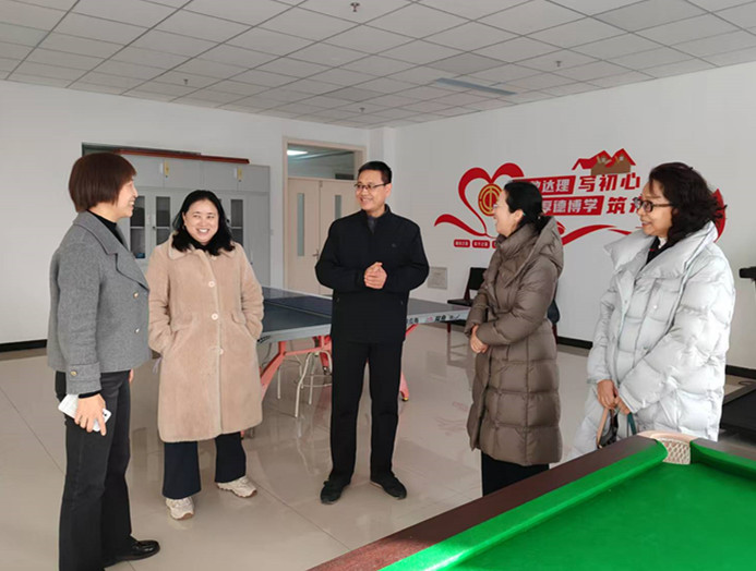 座谈会前,伊淑霞一行在工会主席刘少华、副主席马旭萍的陪同下,实地参观了学校机关行政、信息工程学院、数理教学部、地球科学学院等四个基层分工会的职工小家建设。